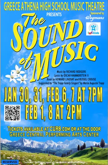 Greece Central Performing Arts Center 800 Long Pond Rd, RochesterGreece Athena High School Music Theatre invites audiences to experience one of the most beloved musicals of all time, The Sound of Music. Timed to celebrate the 60th Anniversary of the Oscar-winning film, students will bring the